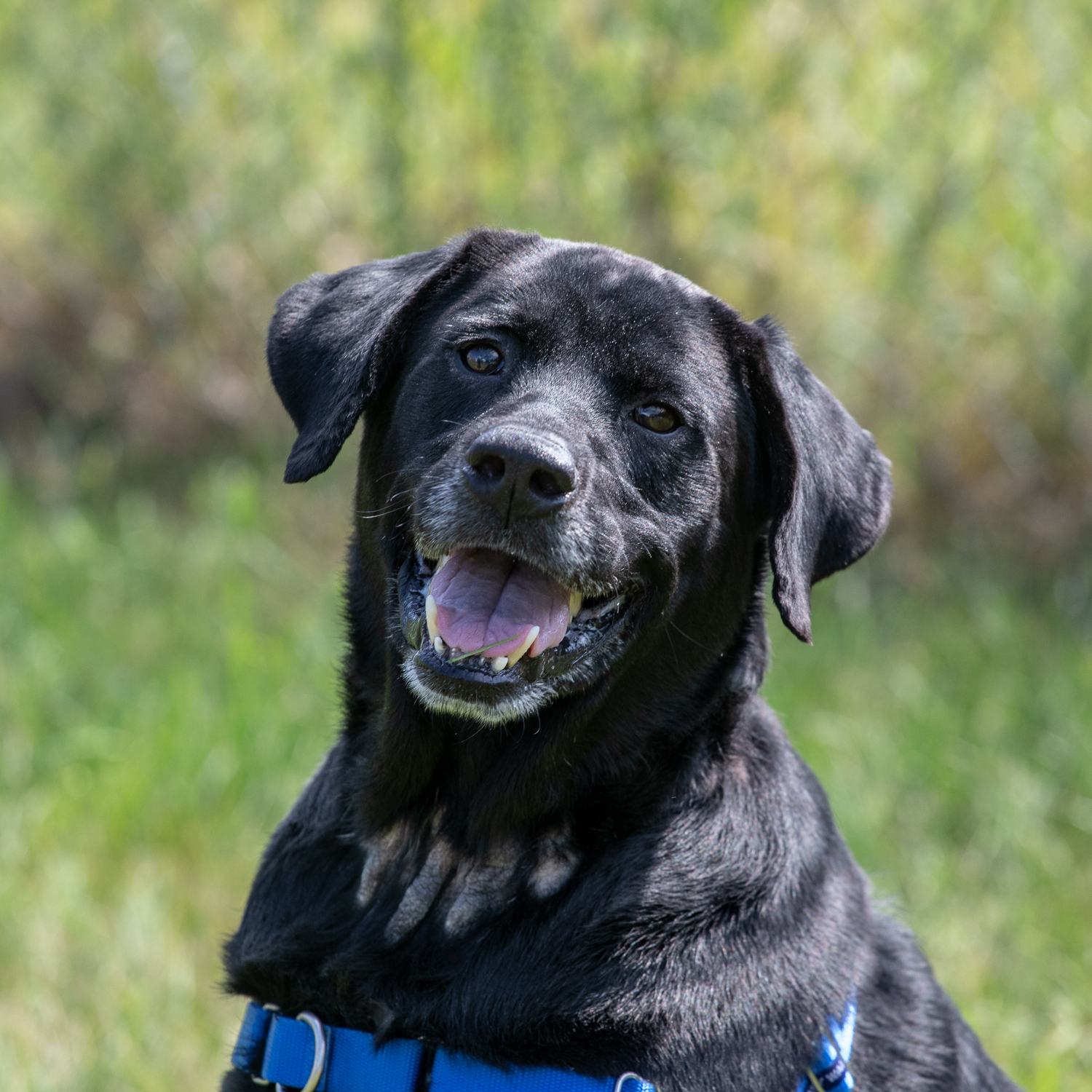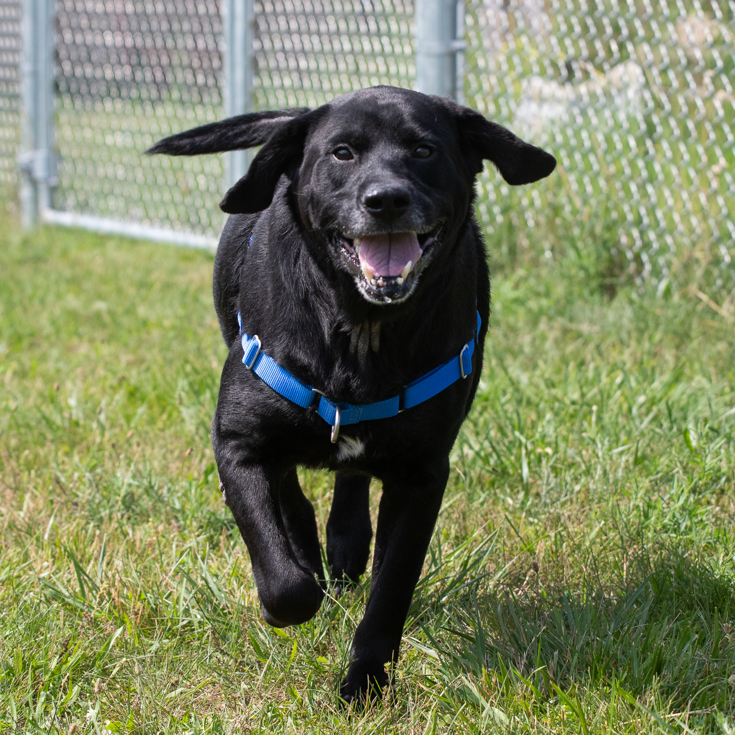 This sweet, 8-year-old Lab mix still loves people after all that he has endured. Besides the evidence of the embedded collar, Coffey also has some serious callouses on his hind end and elbows from laying on very hard surfaces for a long time before he arrived at CHS.